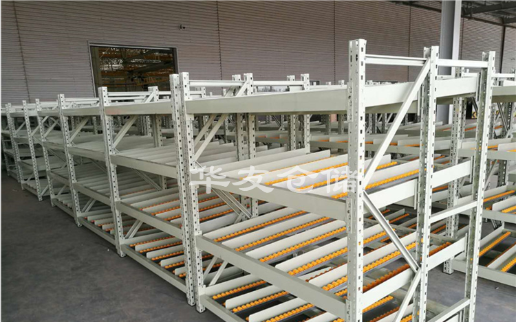 輥輪式貨架適合生產(chǎn)流水線或裝配線上及小包裝成品物料的存放,物料依靠重力沿輥輪下滑,操作方便,先進先出。